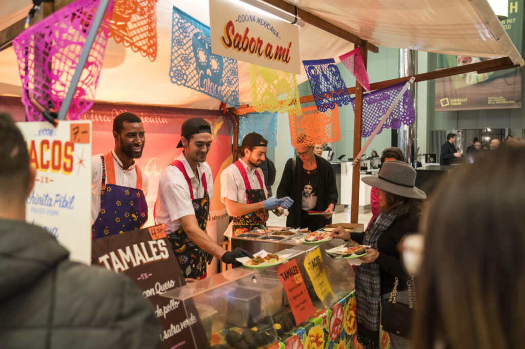 Einen Hauch diese lebendigen Markttradition bringen wir bei unseren Veranstaltungen nach Berlin – besonders sichtbar beim Totenfest: Tacos, Tamales, Tostadas, Tequila – probieren Sie auf dem Mercado de Almeda im Foyer des Humboldt Forums original mexikanische Spezialitäten! Kunsthandwerk und süße Backwaren speziell zum Totenfest sind ein ideales Mitbringsel und Erinnerungsstück.